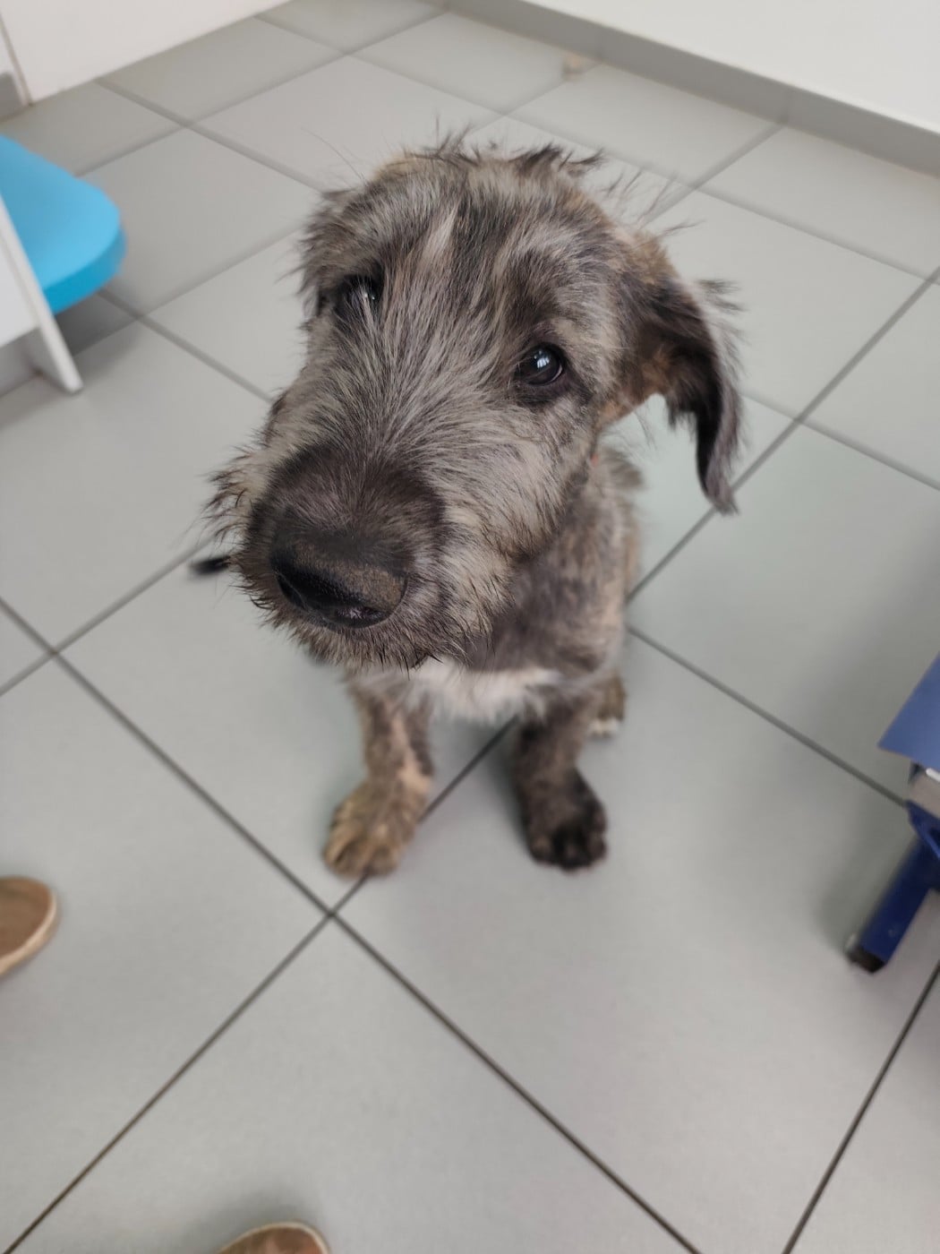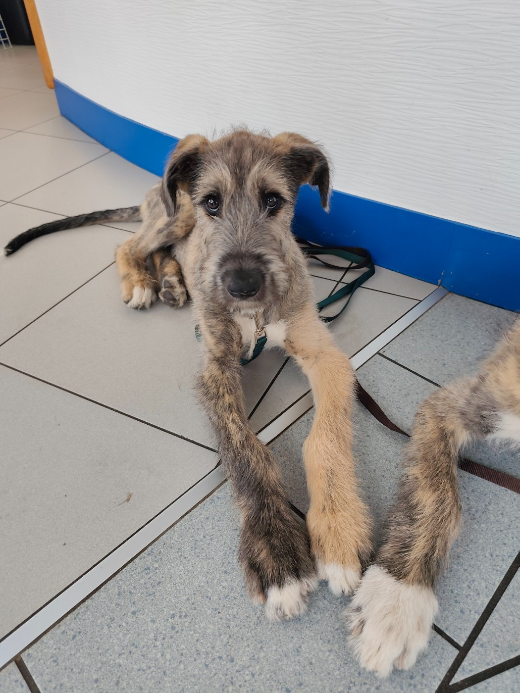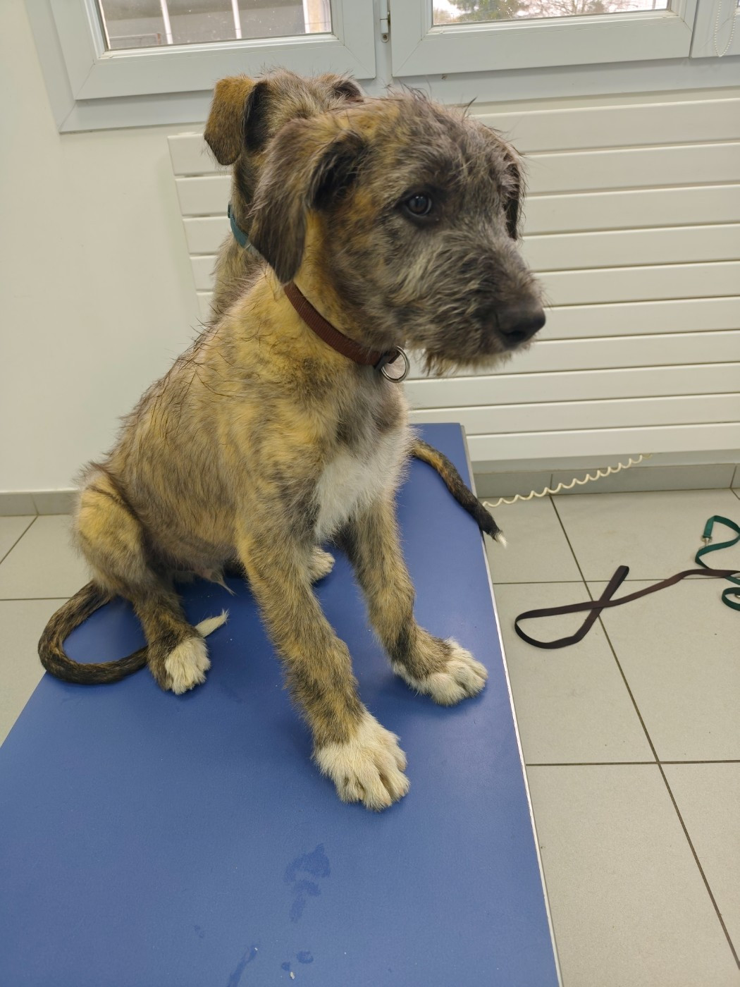 Femelle collier rose, Arrietty est une petite chienne attachante qui adore le contact avec l'humain, elle recherche les câlins toute la journée. C'est un petit gabarit, svelte et tout en muscle, elle est très agile avec son corps et sait déjà comment monter sur le canapé. Elle pourra partir dans une famille dont c'est le premier Irish car elle est très avenante et pas du tout difficile à vivre. Mais elle saura aussi s'adapter si vous avez déjà des chiens ou chats.